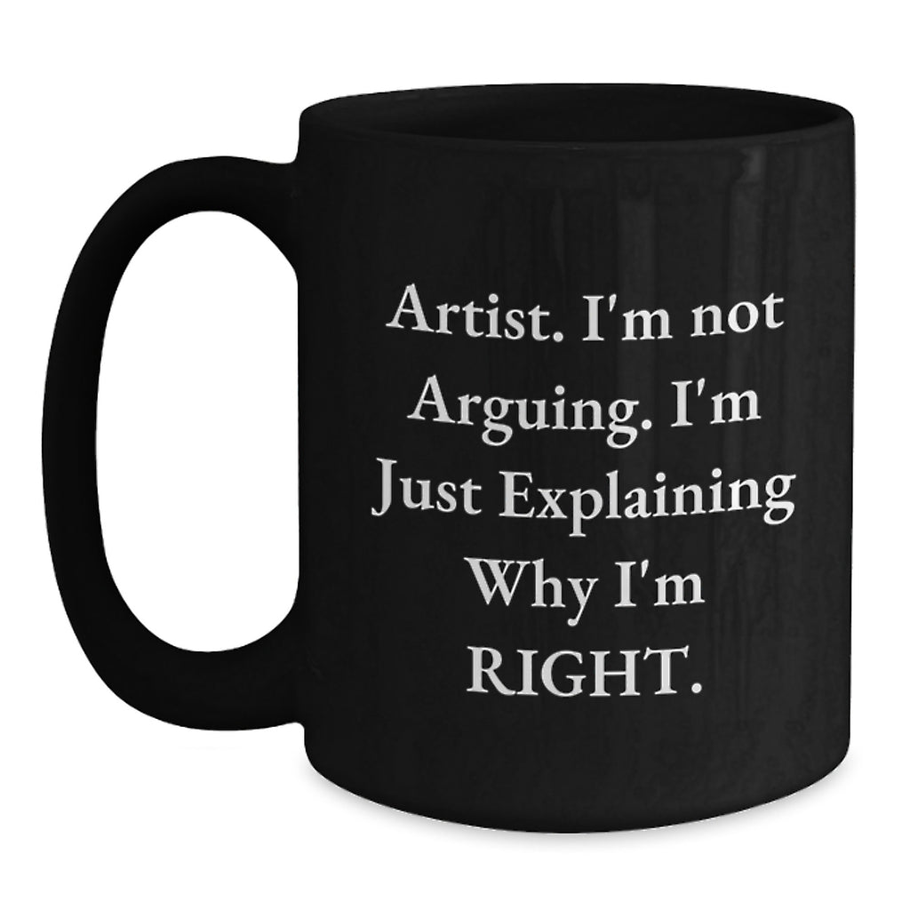 - Experience the unique artistry of this 'Artist. I'm Not Arguing. I'm Just Explaining Why I'm Right.' Black Coffee Mug, perfect for coffee and tea lovers who appreciate the creative spirit.