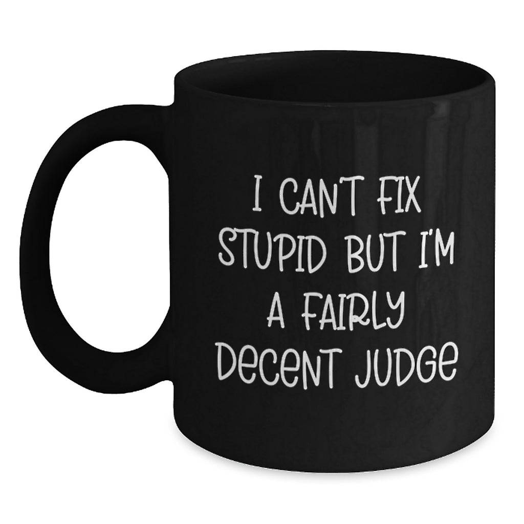 - Make a statement with our funny 'I Can't Fix Stupid But I'm A Fairly Decent Judge' Black Coffee Mug, perfect for Judges, friends, or family members who appreciate a good sense of humor.