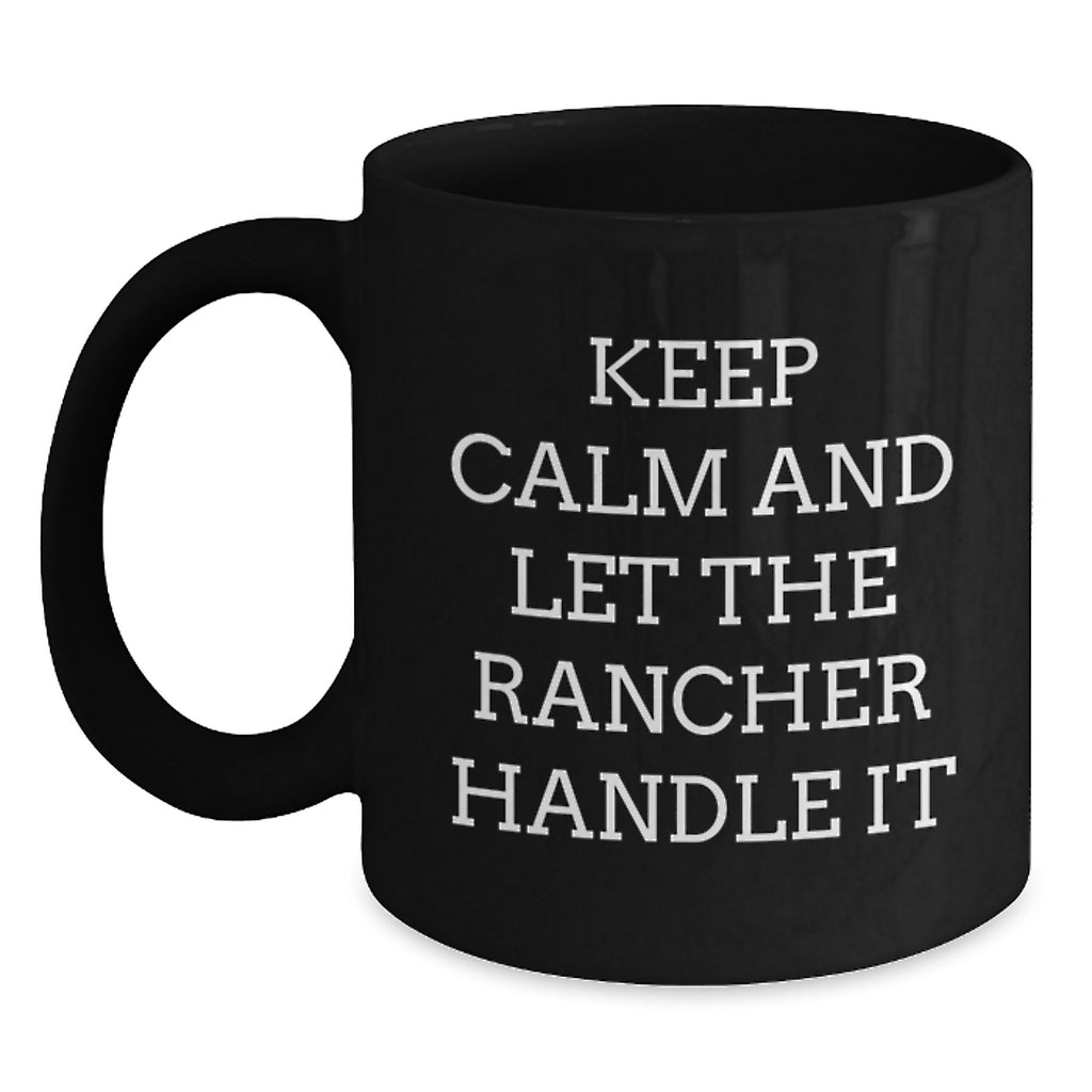 - A funny and unique gift for any rancher, farmer, or cowboy in your life, this black coffee mug features the 'Keep Calm And Let The Rancher Handle It' quote on a ceramic mug available in black with a capacity of 11oz or 15oz.