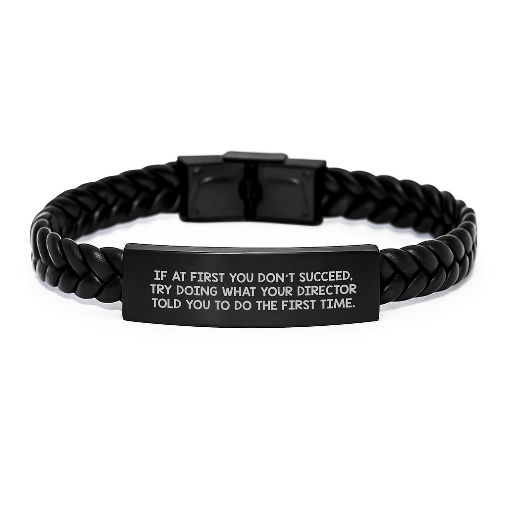 - This funny quote interlaced leather bracelet is a thoughtful gift for any director, and it's a great way to show your appreciation for their hard work and dedication. The quote 'If At First You Don't Succeed, Try Doing What Your Director Told You To Do The First Time' is a funny and relatable saying that will make anyone laugh. It's a great conversation starter and a unique way to express your personality.
