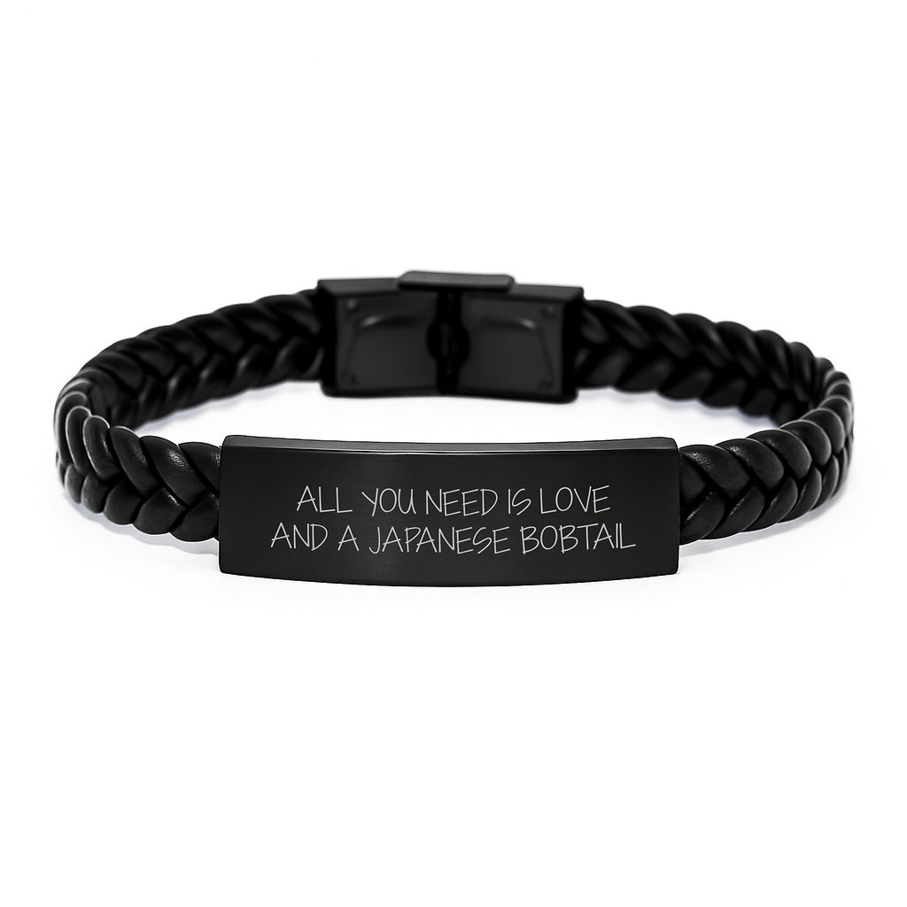 • Experience the love of Japanese Bobtail Cats with our interlaced leather bracelet, 'All You Need Is Love And A Japanese Bobtail', featuring a unique blend of style and comfort that is perfect for Christmas gifts.