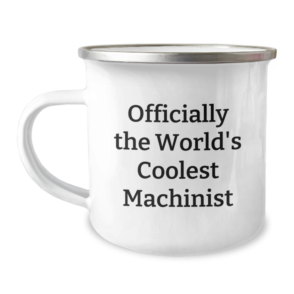 - This funny machinist gift is a unique and thoughtful present that any machinist would love to receive. The 'Officially The World's Coolest Machinist' design is a humorous way to acknowledge the machinist's skills and expertise. Made from high-quality stainless steel with a sturdy enamel finish, this camping mug is perfect for hot or cold beverages on the go. The machinist gift is a great way to show appreciation for their hard work and dedication.