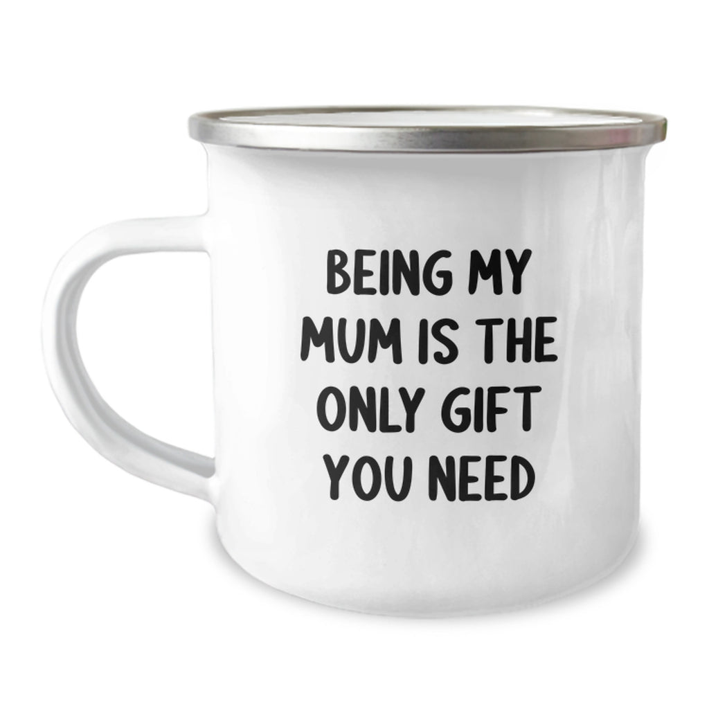 • This Funny Mum Gifts from Family, Unique Camping Mug for Mum is the perfect way to show your appreciation for all that she does. Made from high-quality stainless steel with a sturdy enamel finish, this Camping Mug is designed to last. The quote 'Being My Mum Is The Only Gift You Need' is a beautiful reminder of the love and care that Mums provide.