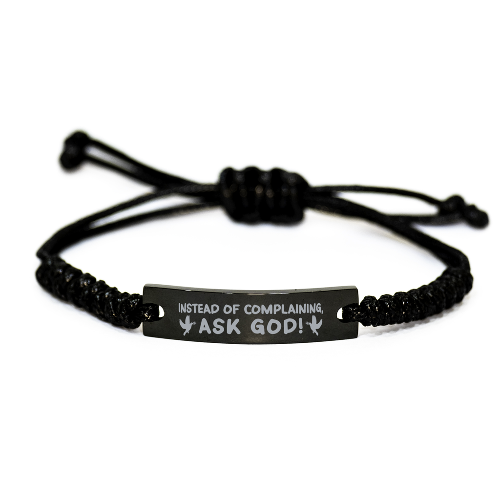 Motivational Christian Black Rope Bracelet, Instead of complaining, ask God!, Inspirational Christmas , Family, Anniversary Gifts For Christian Men, Women, Girls & Boys