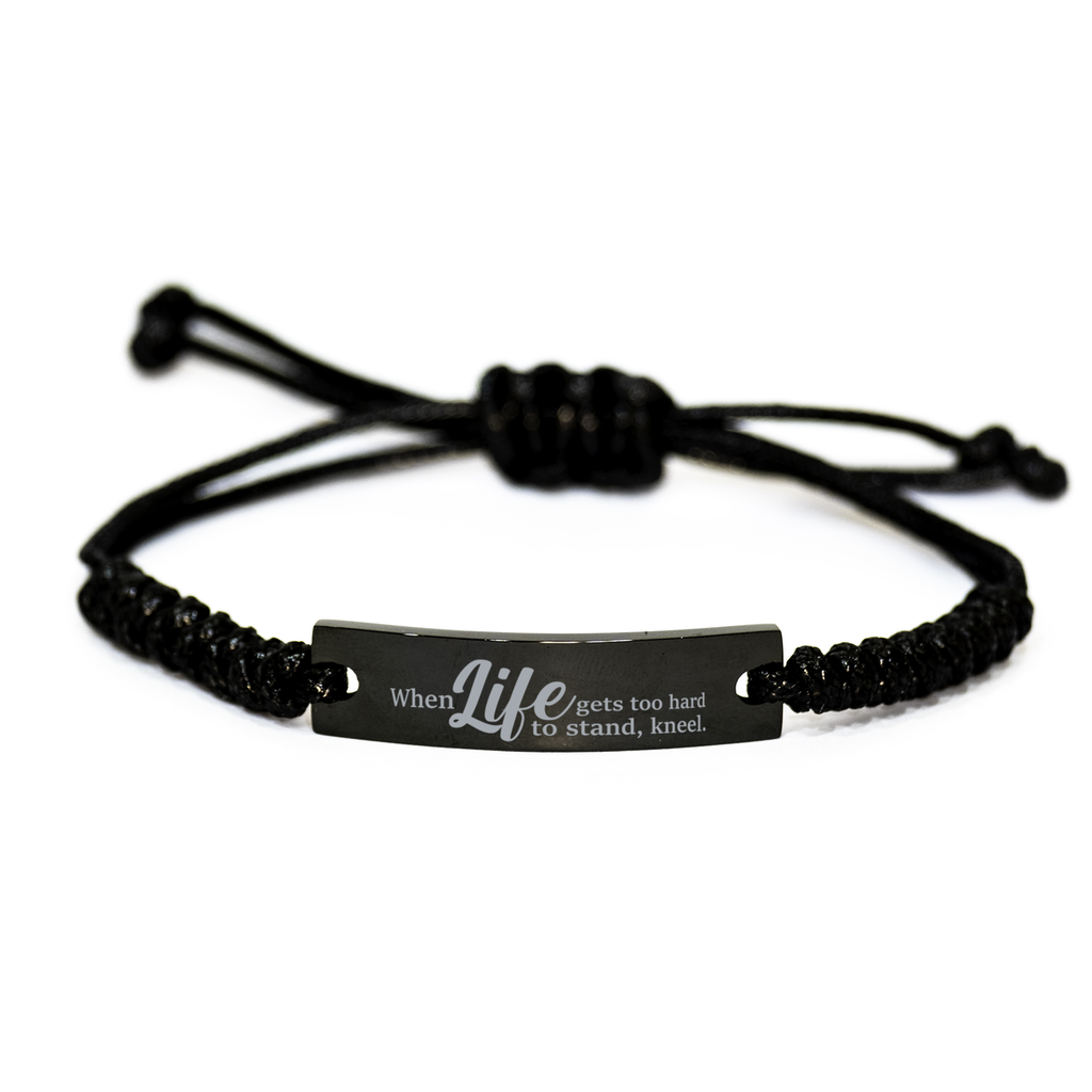 Motivational Christian Black Rope Bracelet, When life gets too hard to stand, kneel., Inspirational Christmas , Family, Anniversary Gifts For Christian Men, Women, Girls & Boys