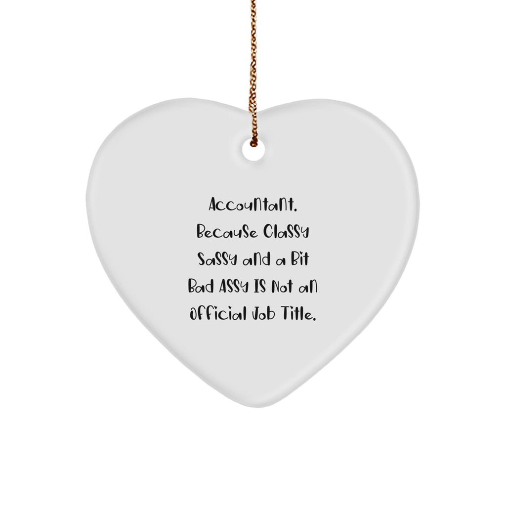 - The Accountant Heart Ornament is designed to be a conversation starter. Its funny design and sturdy construction make it the ideal gift for anyone who loves to have a little fun. Whether you're shopping for a unique gift or just want to add a little humor to your Christmas decor, this ornament is the way to go.