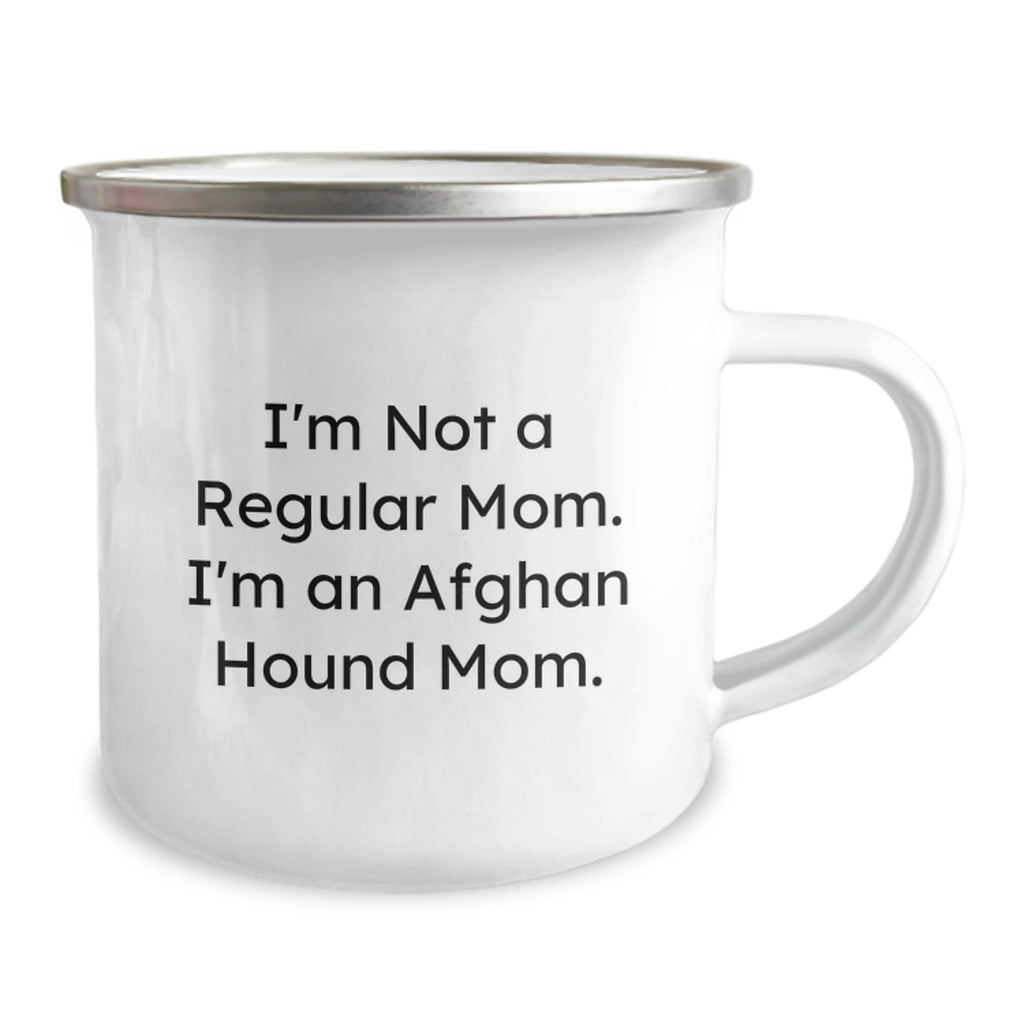 - This Camping Mug is a ideal gift for any occasion, including Christmas. The funny quote 'I'm Not A Regular Mom. I'm An Afghan Hound Mom.' is a great way to express your love and appreciation for her dedication to her pet. Whether you're shopping for a gift for a friend, family member, or coworker, this mug is a wonderful way to express your love and appreciation.