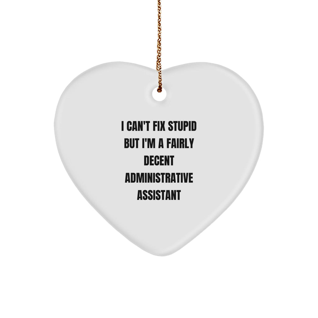 - Our Heart Ornament is the perfect way to show your appreciation for an Administrative Assistant's hard work and dedication. With a funny quote that says 'I Can't Fix Stupid But I'm A Fairly Decent Administrative Assistant,' this Heart Ornament is sure to bring a smile to their face.