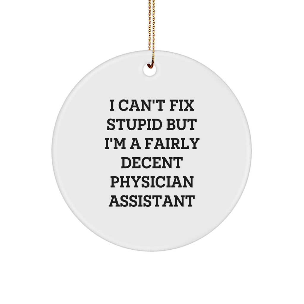 Funny Physician Assistant Gifts for Christmas, 'I Can't Fix Stupid But I'm A Fairly Decent Physician Assistant', Circle Ornament, Gifts from Friends and Family