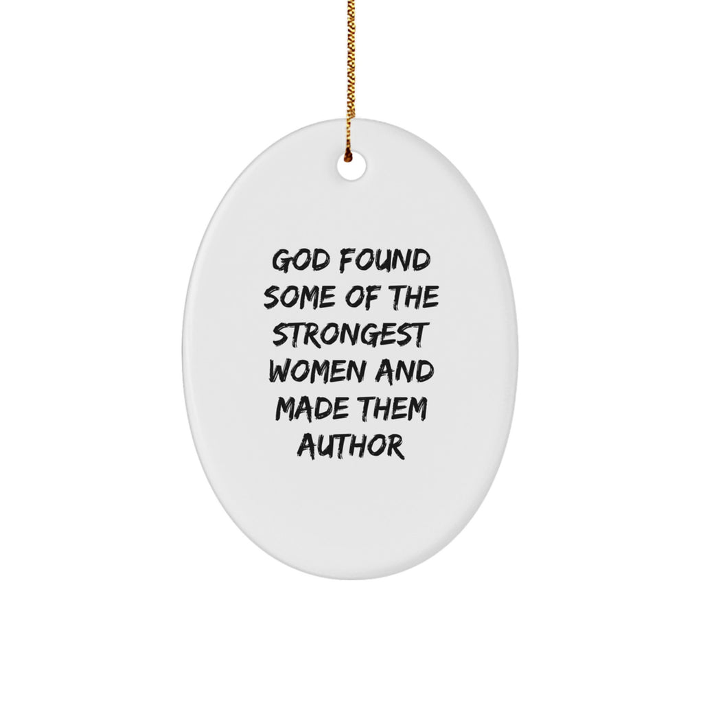 Funny Author Gifts for Women, Oval Ornament Quote 'God Found Some Of The Strongest Women And Made Them Author', Christmas Unique Gifts from Women to Women