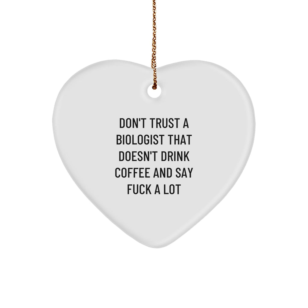 Funny Biologist Gifts for Men - Heart Ornament with Quote 'Don't Trust A Biologist That Doesn't Drink Coffee And Say F--k A Lot' - Gifts from Friends, Gifts for Him, Christmas Unique Gifts