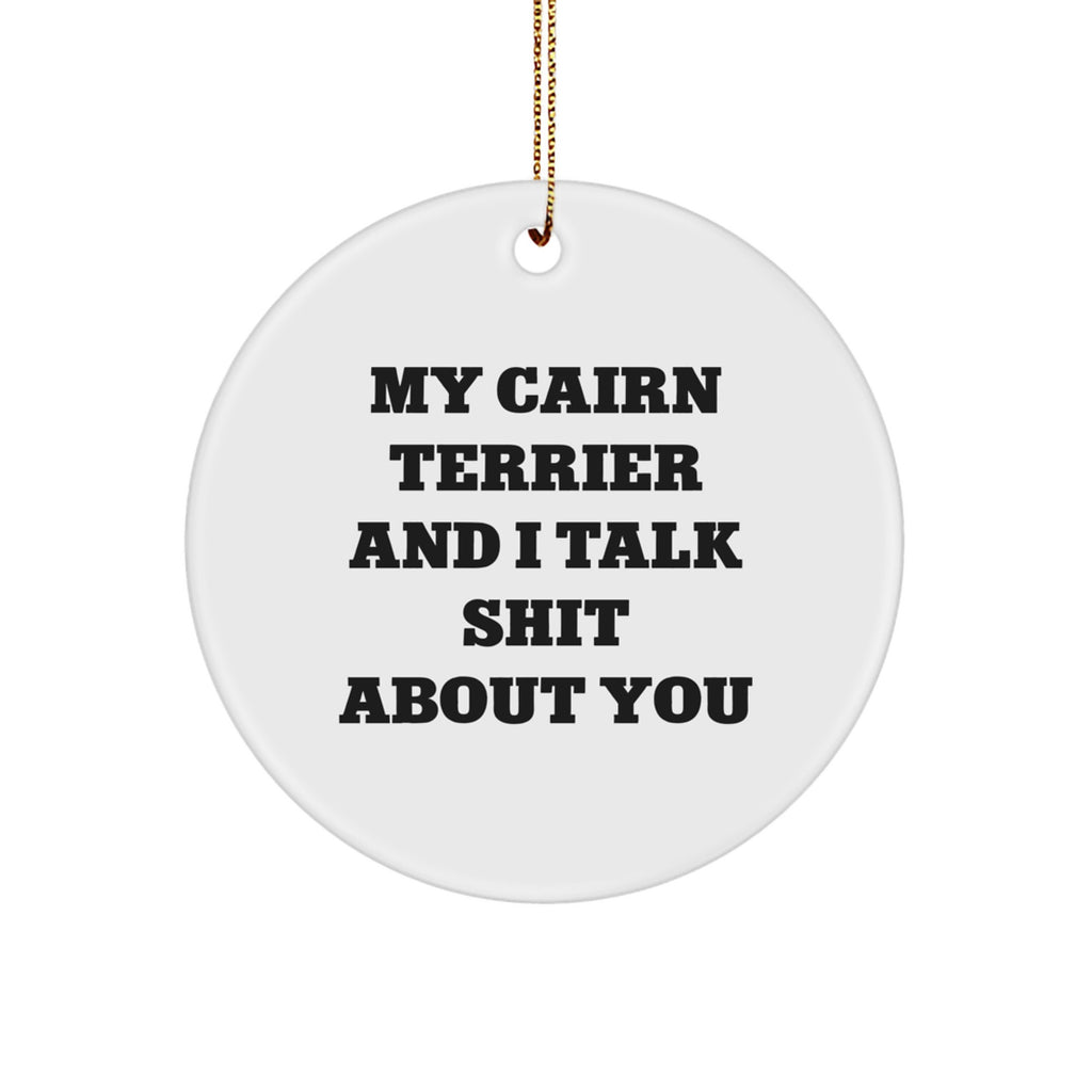 • Add this 'My Cairn Terrier And I Talk Shit About You' quote circle ornament to your holiday collection and enjoy the joy and companionship of Cairn Terrier Dogs with your loved ones