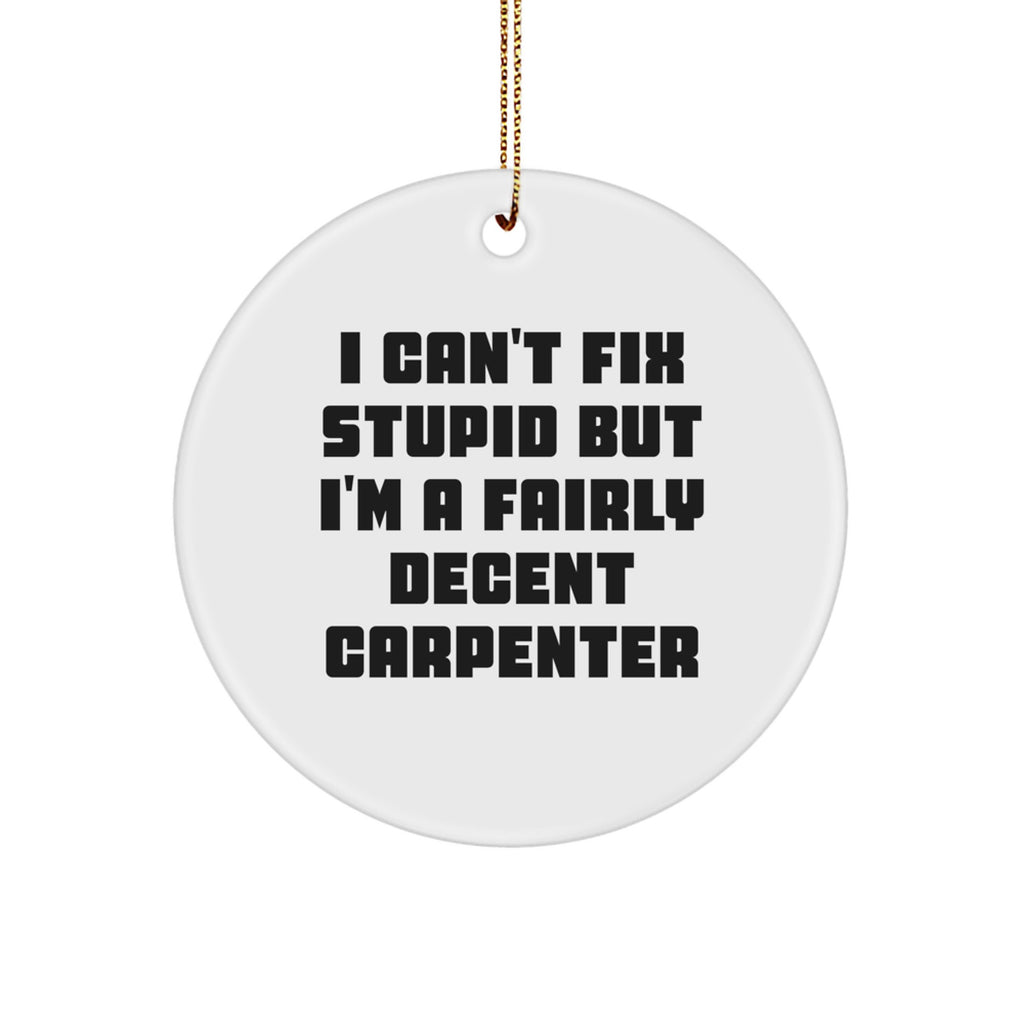 - This funny Christmas circle ornament is a unique gift for any carpenter who loves to laugh and have a good time. The quote 'I Can't Fix Stupid But I'm A Fairly Decent Carpenter' is sure to bring a smile to their face and add some festive cheer to their workshop or home.