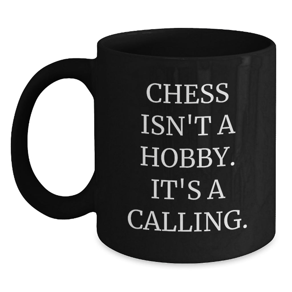 - Get ready to level up your coffee game with our funny Black Coffee Mug, featuring the inspirational quote 'Chess Isn't A Hobby. It's A Calling.' that will resonate with any Chess lover. This ceramic mug is perfect for daily use and makes a great gift for friends, family, or coworkers who share your passion for Chess.