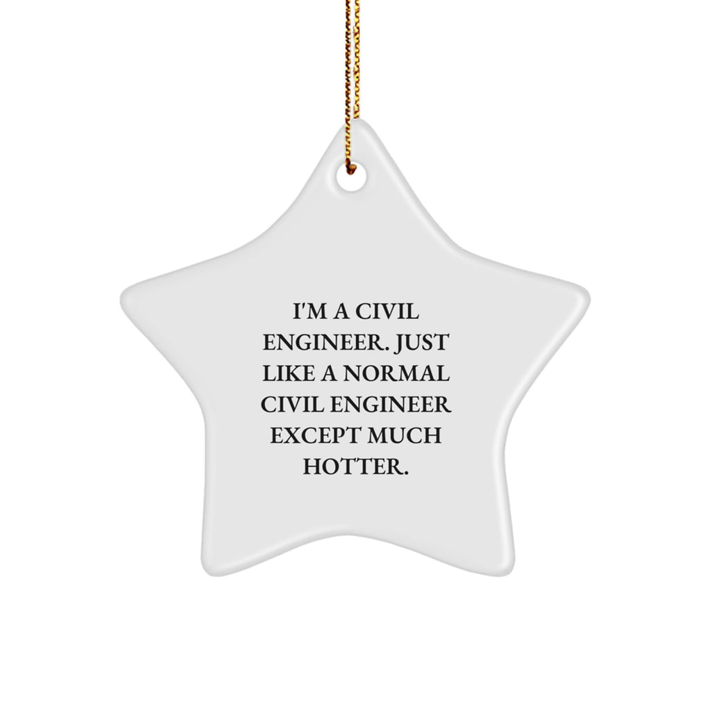 Funny Civil Engineer Gifts, 'I'm A Civil Engineer. Just Like A Normal Civil Engineer Except Much Hotter.' Star Ornament for Christmas, Gifts from Friends, Gifts for Civil Engineers