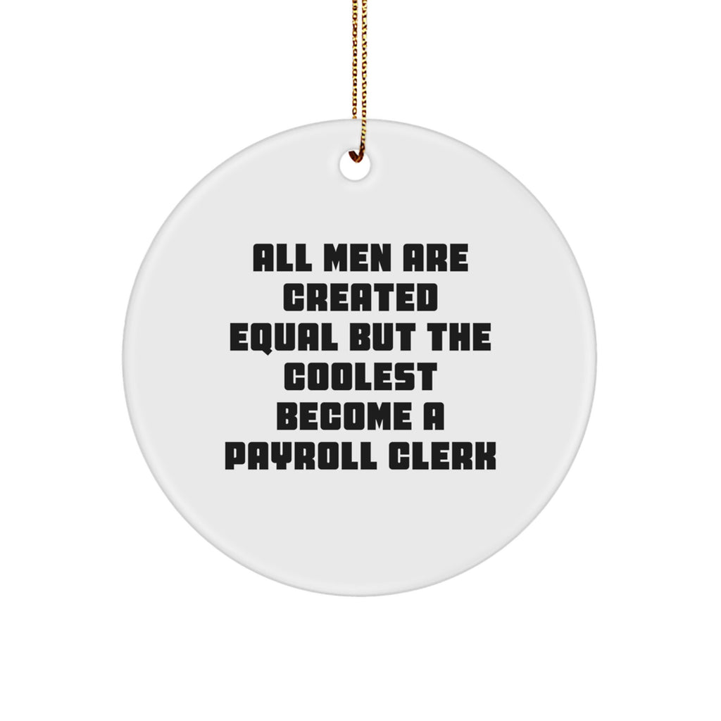 Funny Payroll Clerk Gifts from Friends - Circle Ornament, 'All Men Are Created Equal But The Coolest Become A Payroll Clerk' Christmas Unique Presents for Payroll Clerk