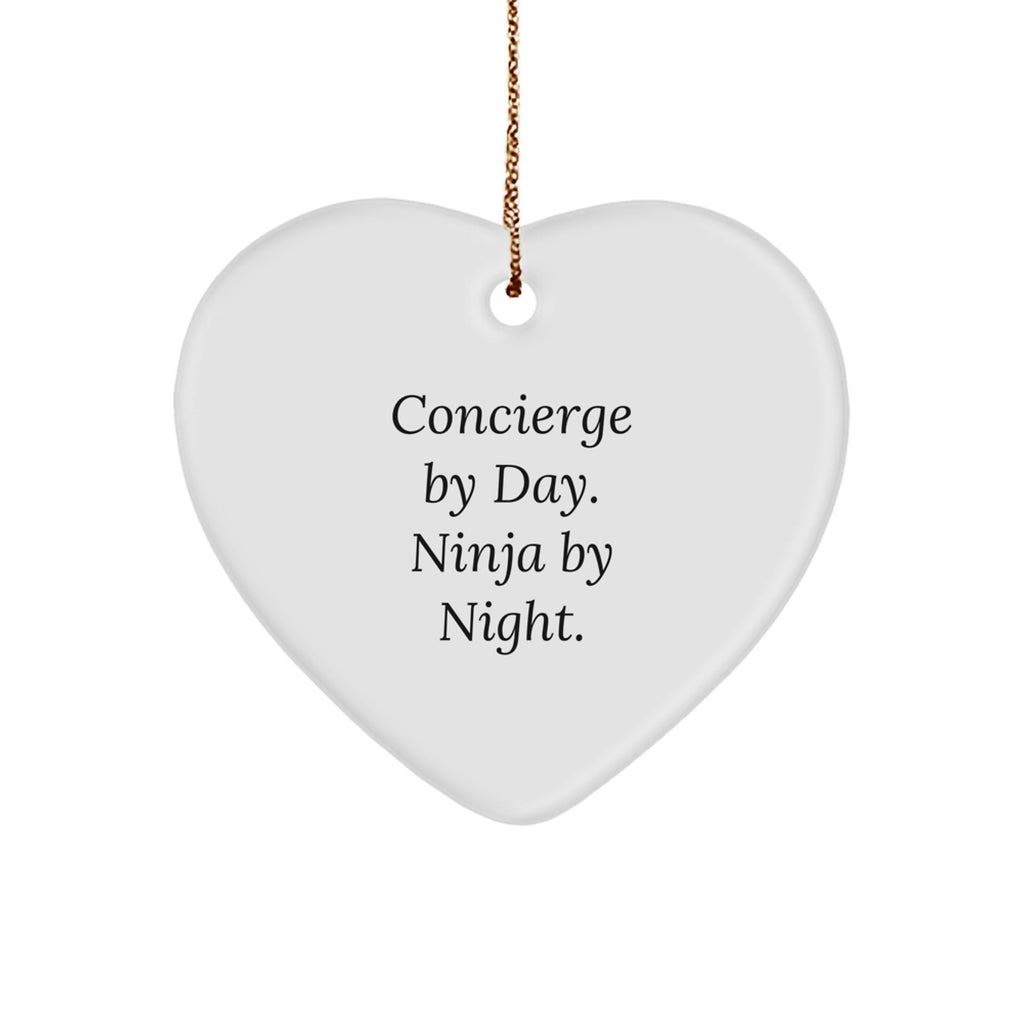 - Add a touch of humor and personality to your Christmas tree or window with this unique Heart Ornament featuring the quote 'Concierge By Day. Ninja By Night.'