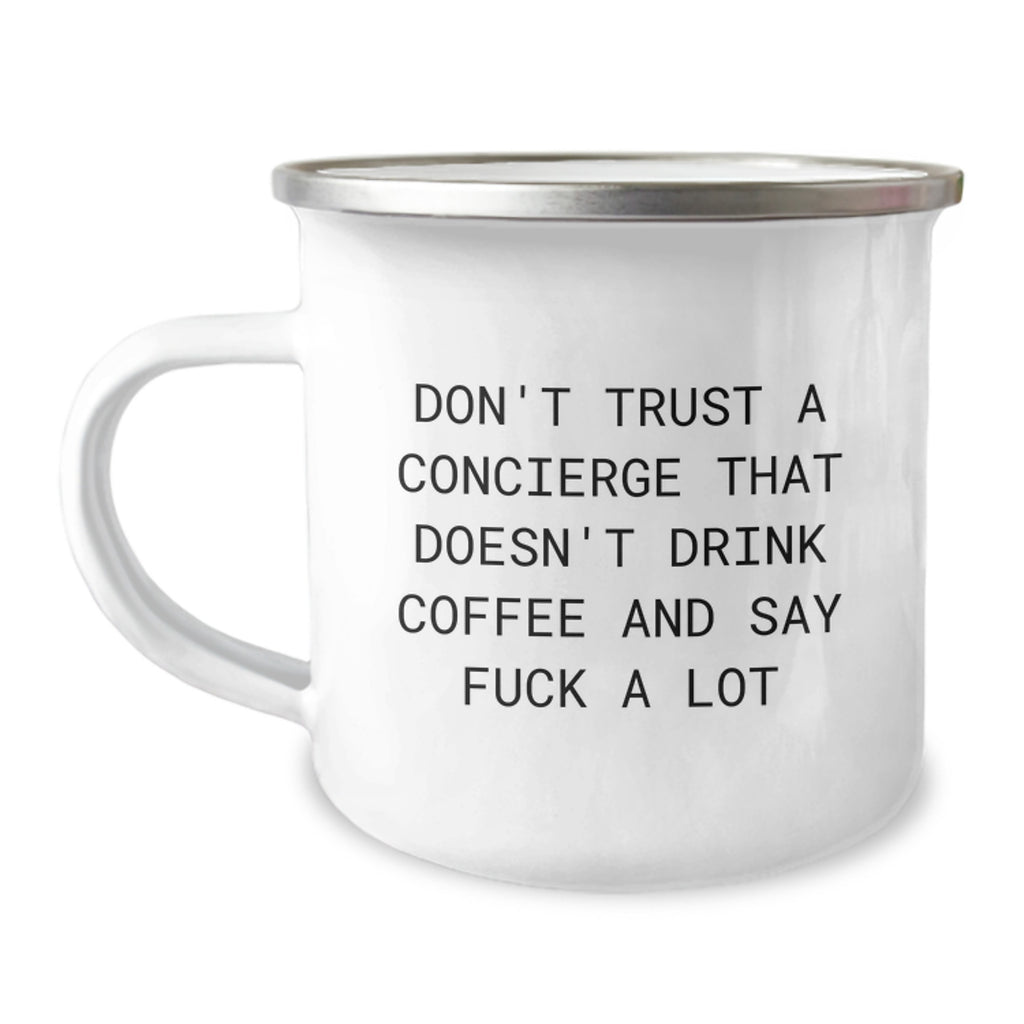 Funny Concierge Gifts for Men, Unique Valentine's Unique Gifts from Friends, Friends, Family, Men, Women - Camping Mug Don't Trust A Concierge That Doesn't Drink Coffee And Say F--k A Lot