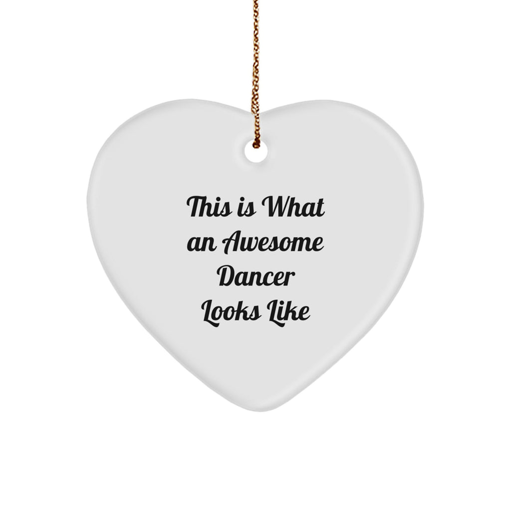 - This heart-shaped ornament is crafted from sturdy MDF and features a beautiful, edge-to-edge print of the quote 'This Is What An Awesome Dancer Looks Like', making it a unique and meaningful way to celebrate the joy of dance. A great gift for any dancer or dance enthusiast.