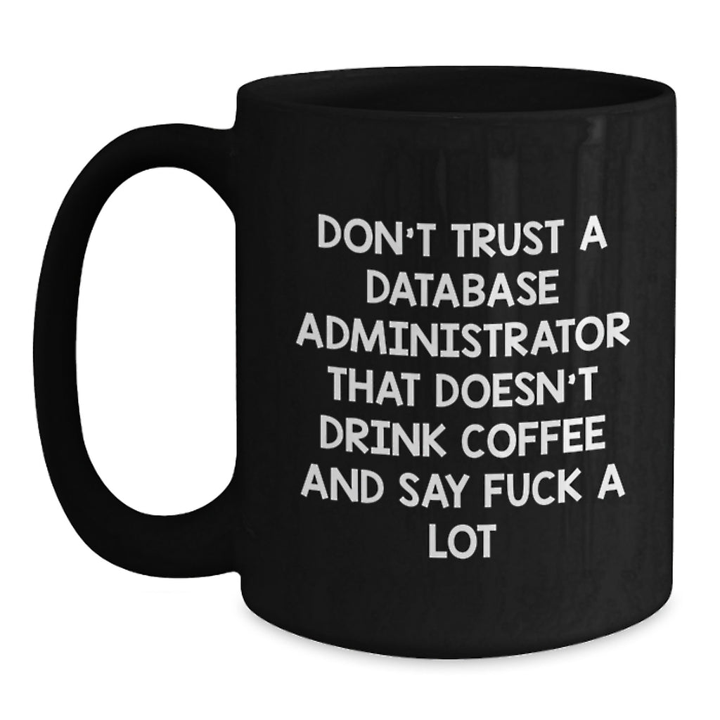- Enjoy your morning coffee in style with this funny 'Don't Trust A Database Administrator That Doesn't Drink Coffee' black coffee mug, perfect for database administrators who love their coffee and hate grumpy coworkers!