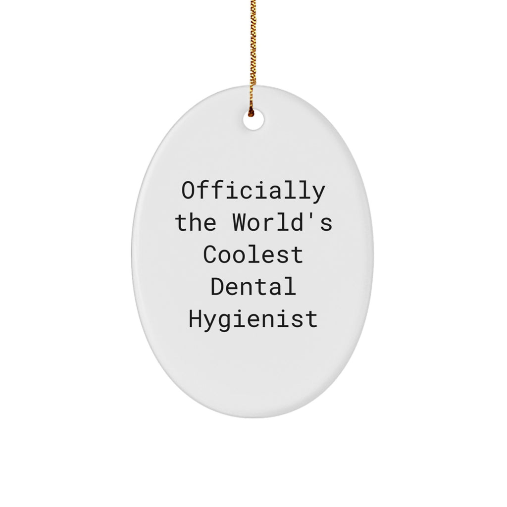 - Don't miss out and make this holiday season one to remember with the 'Officially The World's Coolest' Dental Hygienist Oval Ornament, perfect for gifts from friends to dental hygienists.