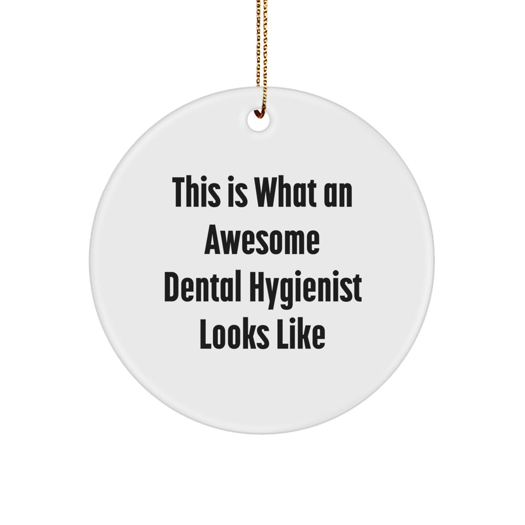 Funny Dental Hygienist Quotes Circle Ornament Gifts from Friends for Christmas, 'This Is What An Awesome Dental Hygienist Looks Like' Circle Shape, Excellent MDF with Sublimation Print, 2.75\