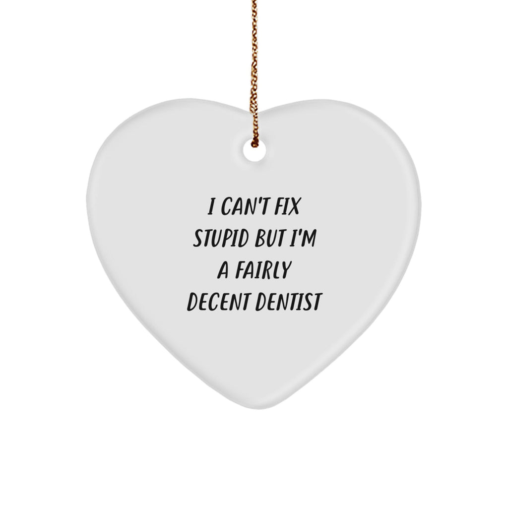 - Get a unique and thoughtful gift for the dentist in your life with this funny heart-shaped ornament. The quote 'I Can't Fix Stupid But I'm A Fairly Decent Dentist' adds a touch of humor to this thoughtful gesture.