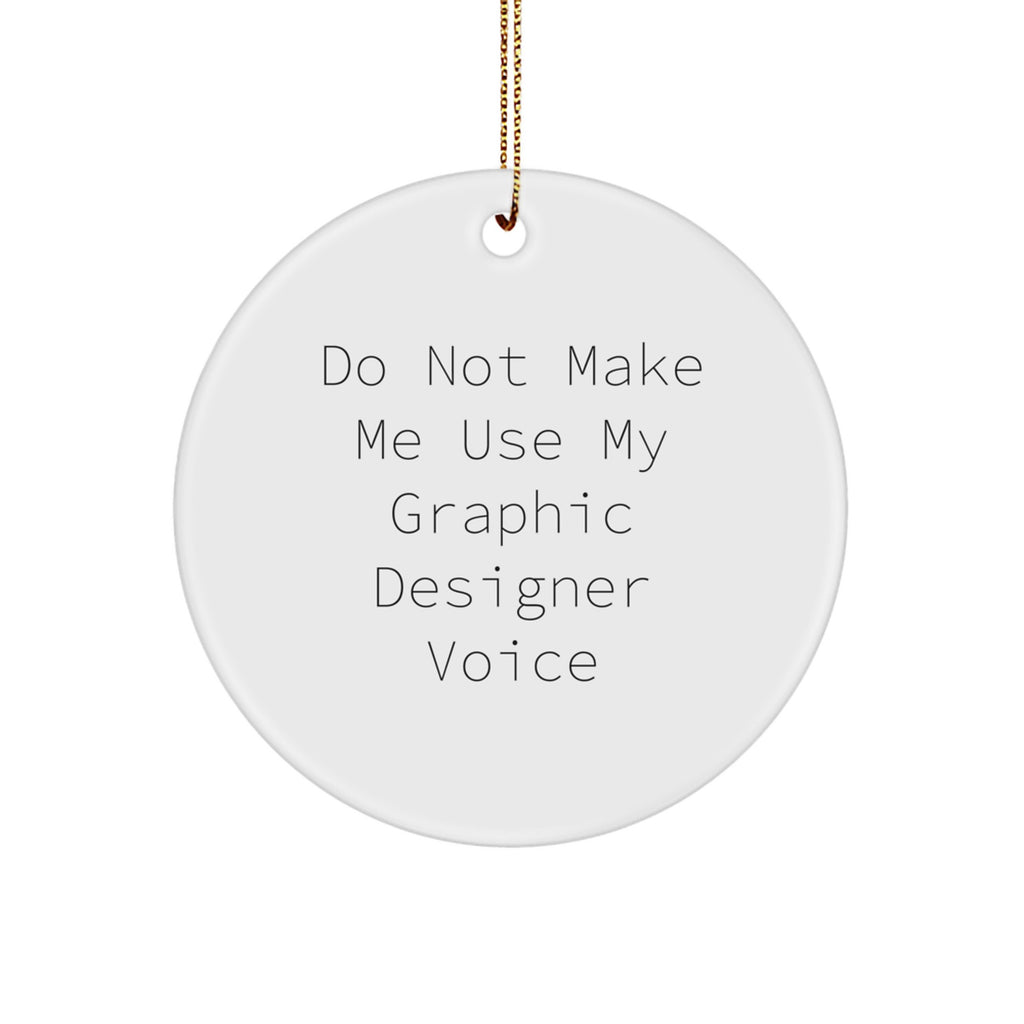 - This Circle Ornament is a thoughtful gift for any graphic designer, featuring the quote 'Do Not Make Me Use My Graphic Designer Voice' in a fun and playful way.
