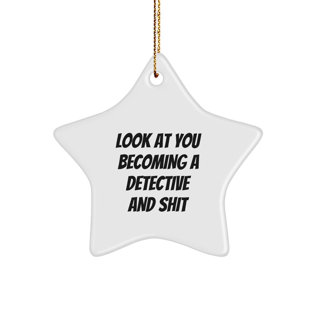 - Make a statement with our funny detective gifts for men and women, perfect for the detective enthusiast in your life. Our star-shaped ornament is a unique and thoughtful way to show your appreciation for their love of detection.