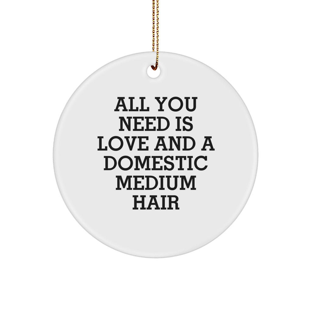 - This Circle Ornament is the perfect way to show your love and appreciation for the Domestic Medium Hair Cat lovers in your life, with its vibrant colors and inspirational quote, 'All You Need Is Love And A Domestic Medium Hair'.