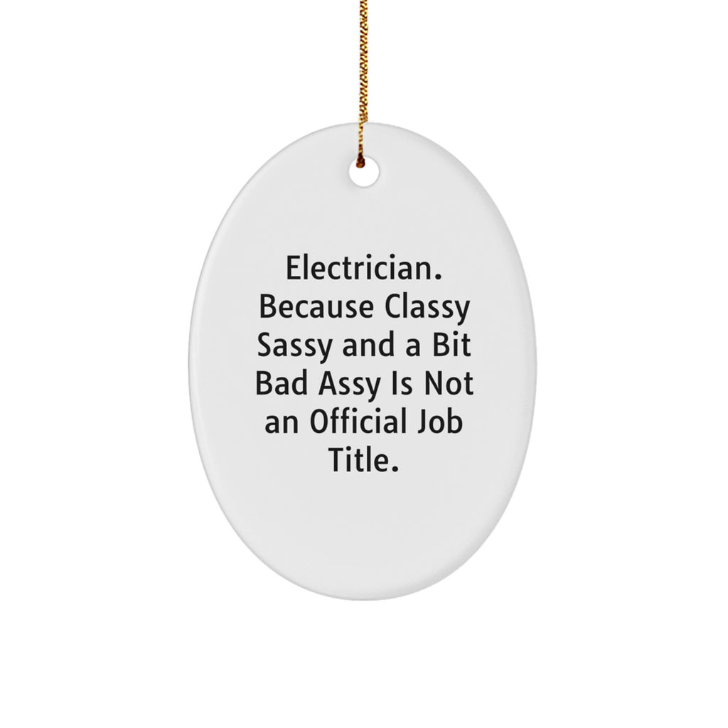 Funny Electrician Gifts from Men, 'Electrician. Because Classy Sassy And A Bit Fearlessy Is Not An Official Job Title.' Oval Ornament for Christmas