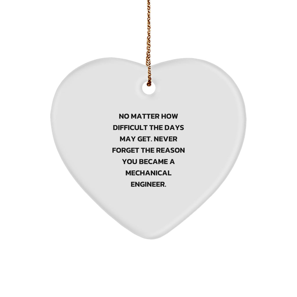 - Show your appreciation for a Mechanical Engineer's hard work and dedication with this funny and inspirational Heart Ornament. Made from sturdy MDF and high-gloss plastic, this ornament is long-lasting and resistant to breaking, making it ideal for households with children or pets.
