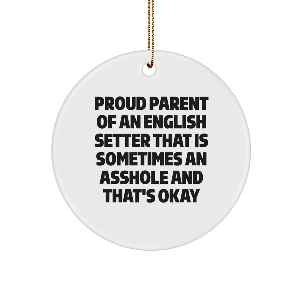 - Make a statement with this funny English Setter dog circle ornament, featuring a hilarious quote that will resonate with any proud parent