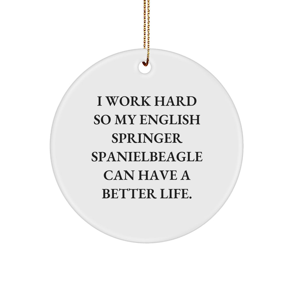 - This Circle Ornament is a unique and thoughtful gift for English Springer Spaniel Dog owners and enthusiasts, featuring the inspiring quote 'I Work Hard So My English Springer Spanielbeagle Can Have A Better Life.'