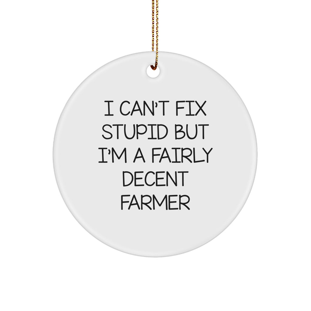 - This 'I'm A Fairly Decent Farmer' Circle Ornament is the perfect way to show your appreciation for the farmers in your life. Whether it's a friend, family member, or coworker, this ornament is sure to bring a smile to their face. And with its lightweight and resistant design, it's perfect for households with children or pets.