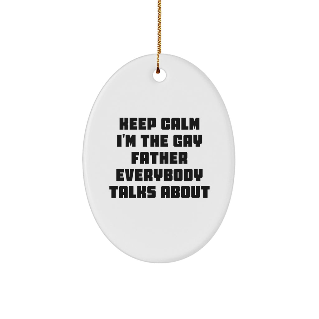 Funny Father Gifts for Christmas - 'Keep Calm I'm The Gay Father Everybody Talks About' Oval Ornament, Gifts from Men to Father, Unique Father's Day Unique Gift Ideas