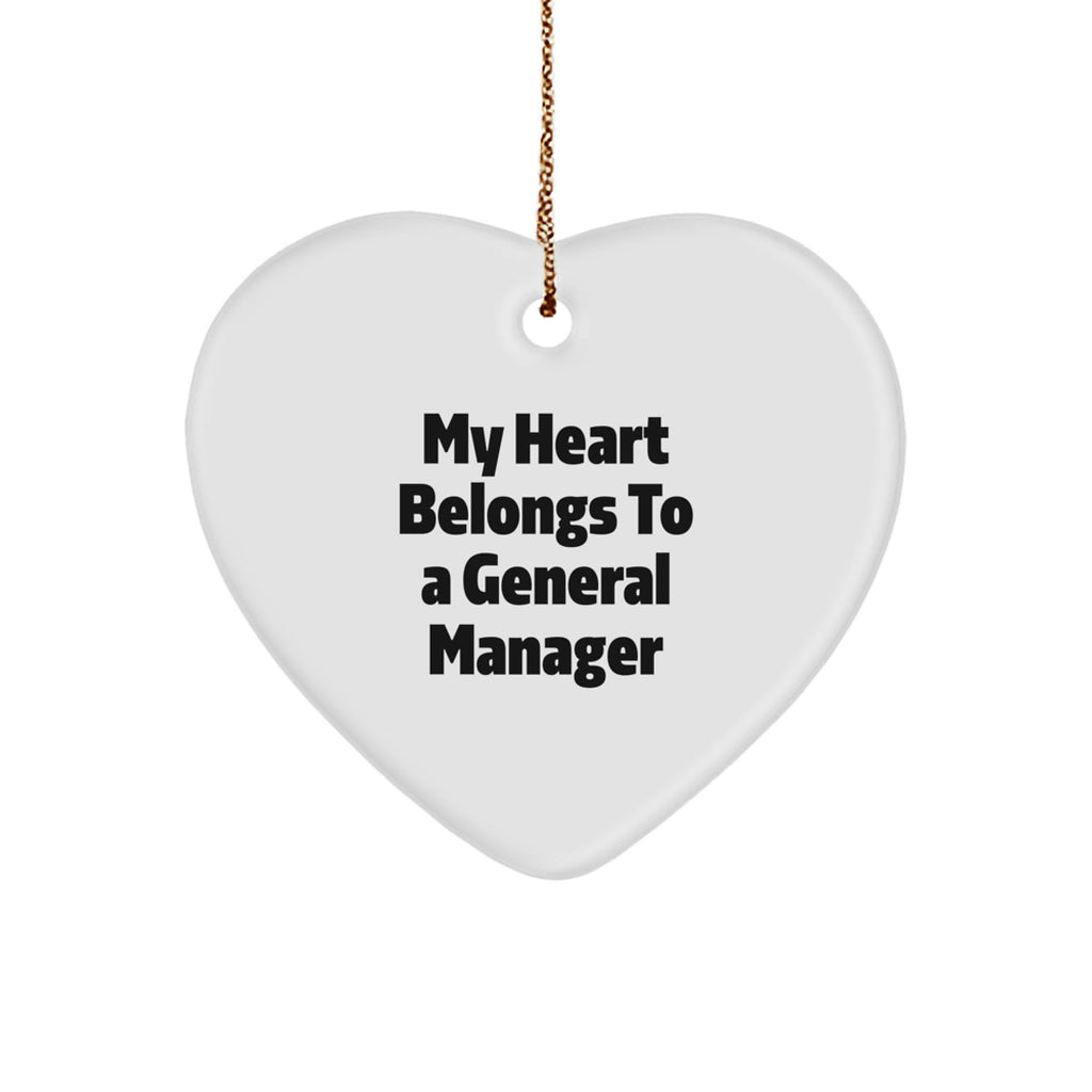 Funny General Manager Heart Ornament Gifts from Friends, Christmas Unique Gifts for General Manager, 'My Heart Belongs To A General Manager'