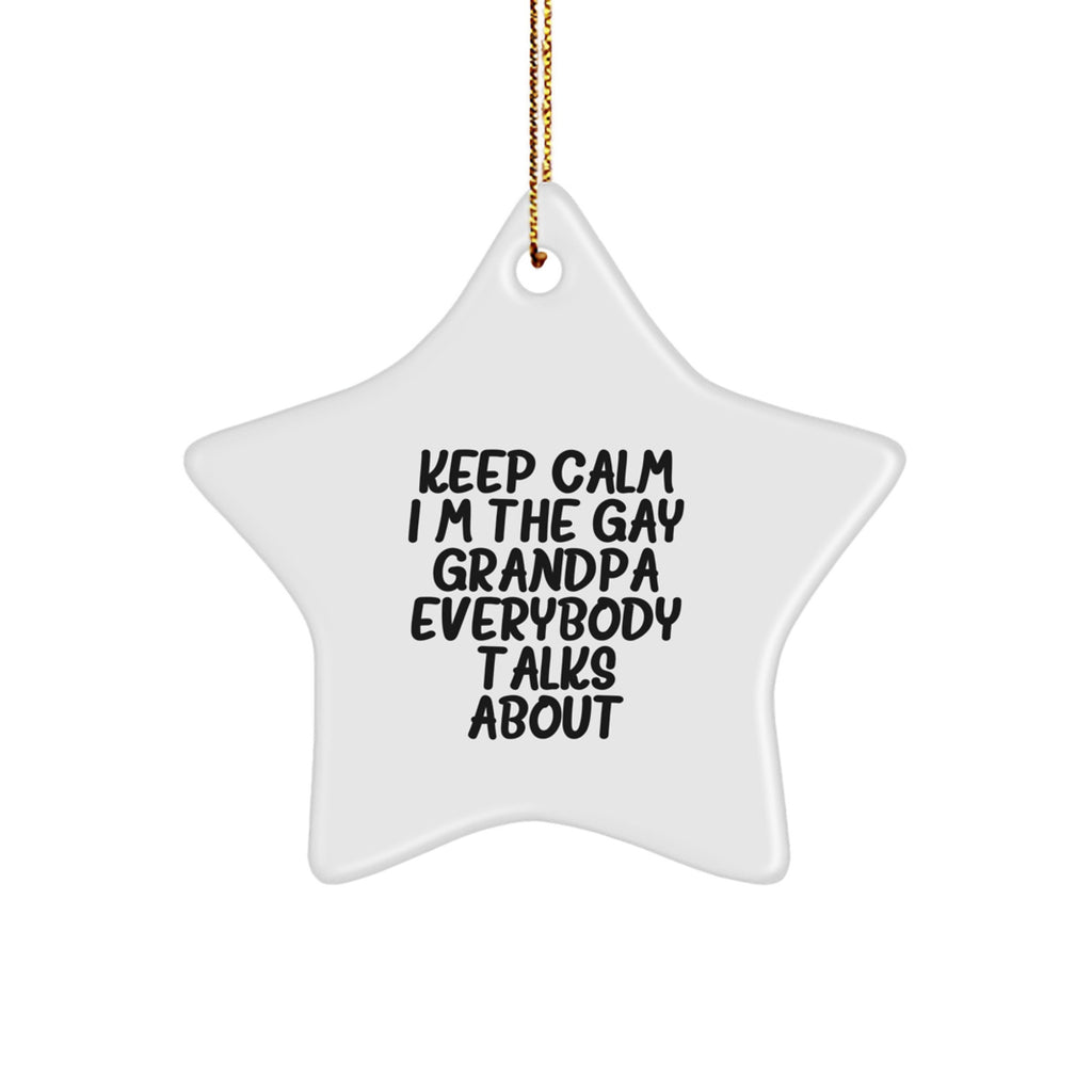 Funny Grandpa Gifts: 'Keep Calm I'm The Gay Grandpa Everybody Talks About' Star Ornament, White, 3.25'' Tall, Gifts from Men, Family, or Friends for Christmas