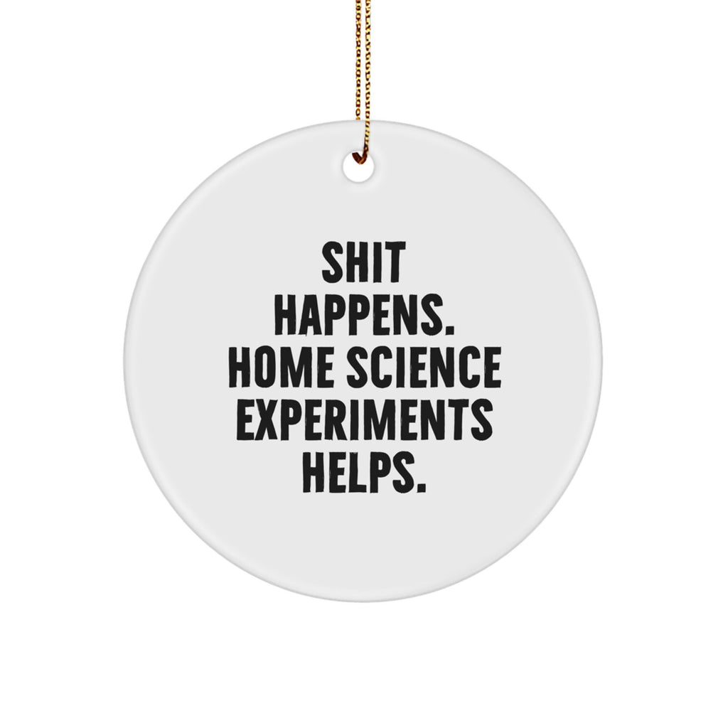 Funny Home Science Experiments Gifts, Circle Ornament for Friends, 'Shit Happens. Home Science Experiments Helps.' Christmas Unique Gifts from Family