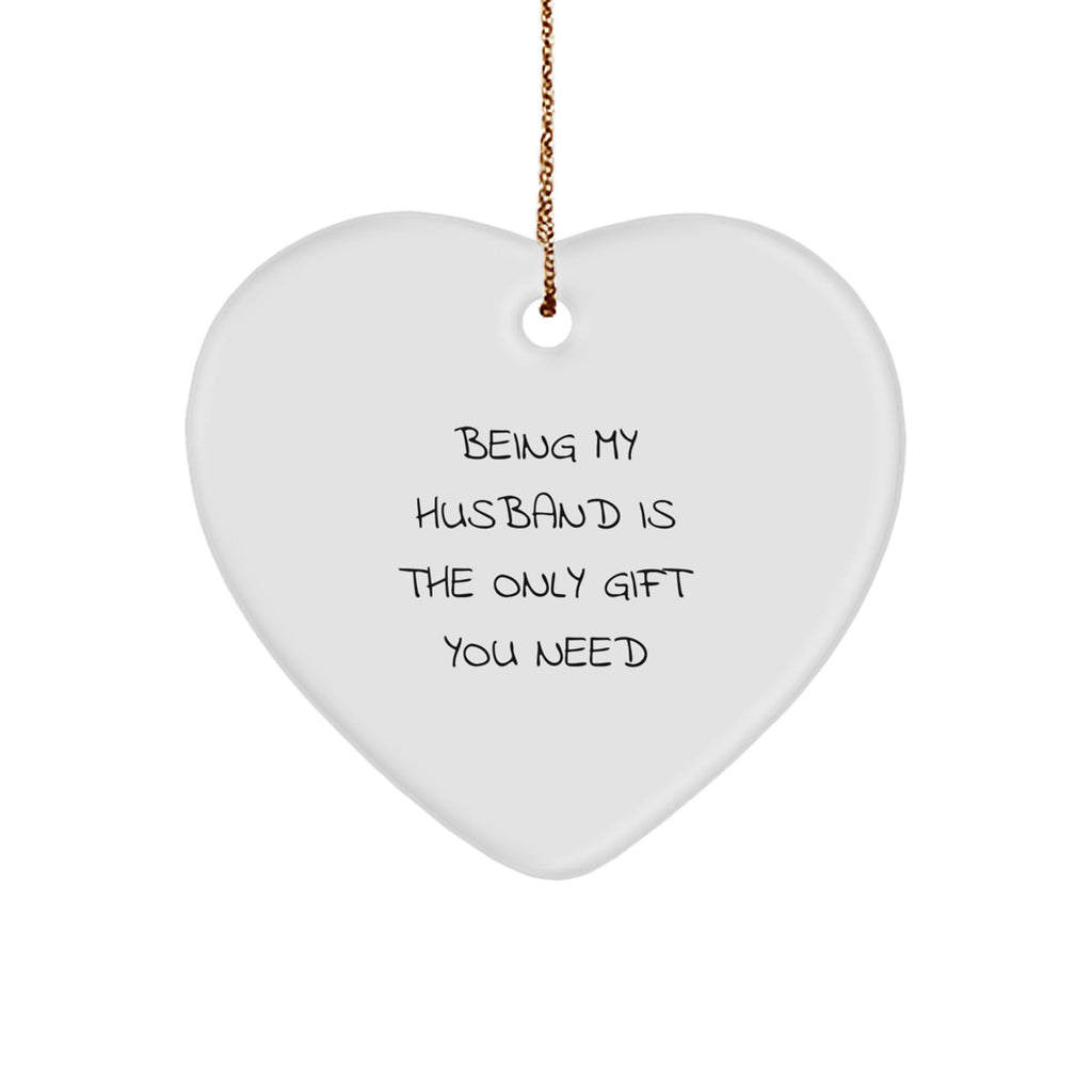 - Our 'Being My Husband Is The Only Gift You Need' Heart Ornament is a unique and thoughtful gift for your husband on Christmas. Made of sturdy MDF with a high-gloss plastic finish, this heart-shaped ornament is vibrantly printed from edge-to-edge via Sublimation, ensuring bright and vivid colors.