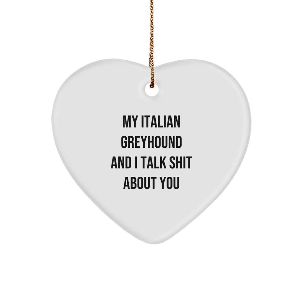 Funny Italian Greyhound Dog Lover Gifts from Friends to Family - Heart Ornament with 'My Italian Greyhound And I Talk Shit About You' Quote for Christmas