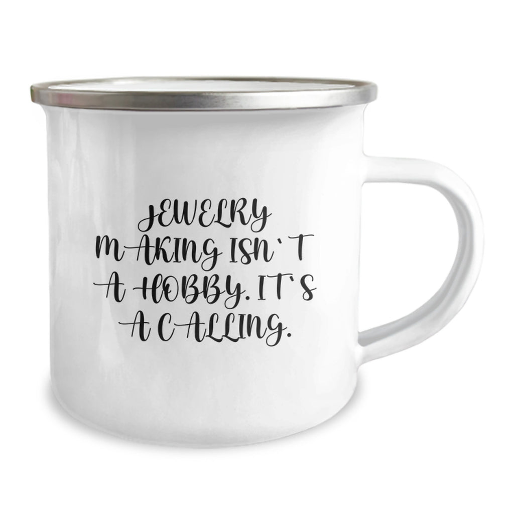 This Christmas, give the gift of Jewelry Making enthusiasm to your loved ones. Our 'Jewelry Making Isn't A Hobby. It's A Calling.' quote camping mug is the perfect way to show your loved ones that you care about their passion for creating beautiful jewelry. Whether it's a family member, friend, or coworker, this mug is sure to bring a smile to their face. So why wait? Don't miss out and give the gift of Jewelry Making joy to someone special in your life!