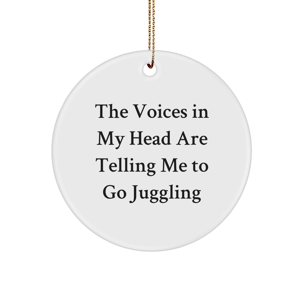 - Give the gift of humor and whimsy this holiday season with our unique 'The Voices In My Head Are Telling Me To Go Juggling' Circle Ornament, perfect for men, women, or friends who love juggling.
