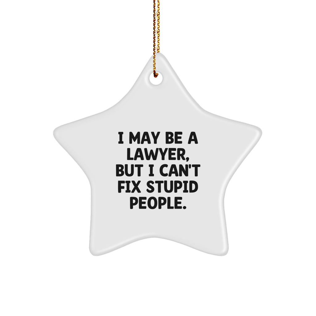 Funny Lawyer Gifts from Friends for Christmas Star Ornament I May Be A Lawyer, But I Can't Fix Stupid People.