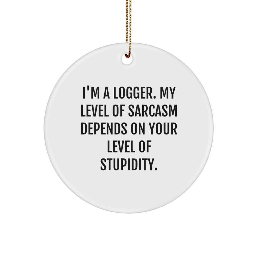 Funny Logger Gifts for Men, Logger Christmas Unique Circle Ornament, 'I'm A Logger Sarcasm' Home Decor