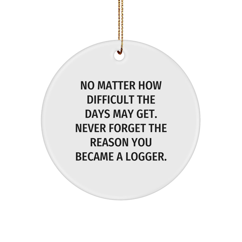 - Get your 'No Matter How Difficult The Days May Get' Logger Circle Ornament today and make a lasting impression on your friends, family, or coworkers. It's a unique and thoughtful gift that will be cherished for years to come.