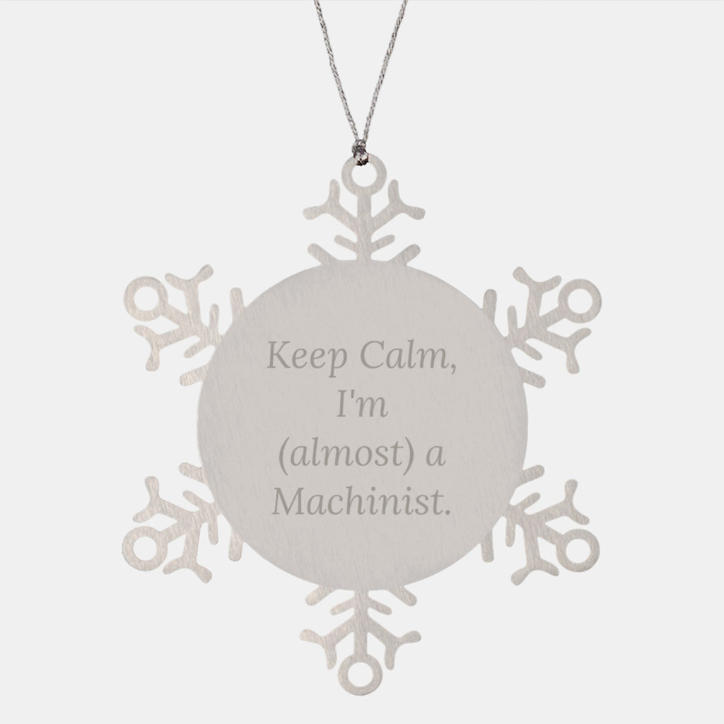 - This snowflake ornament is a funny and unique gift for any machinist, featuring the quote 'Keep Calm, I'm (almost) A Machinist' to poke fun at their profession.