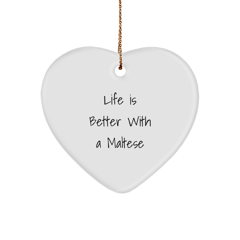 Maltese Dog Lovers Gift, Funny Heart Ornament, Life Is Better With A Maltese, Gifts from Family for Maltese Dog, Christmas Unique