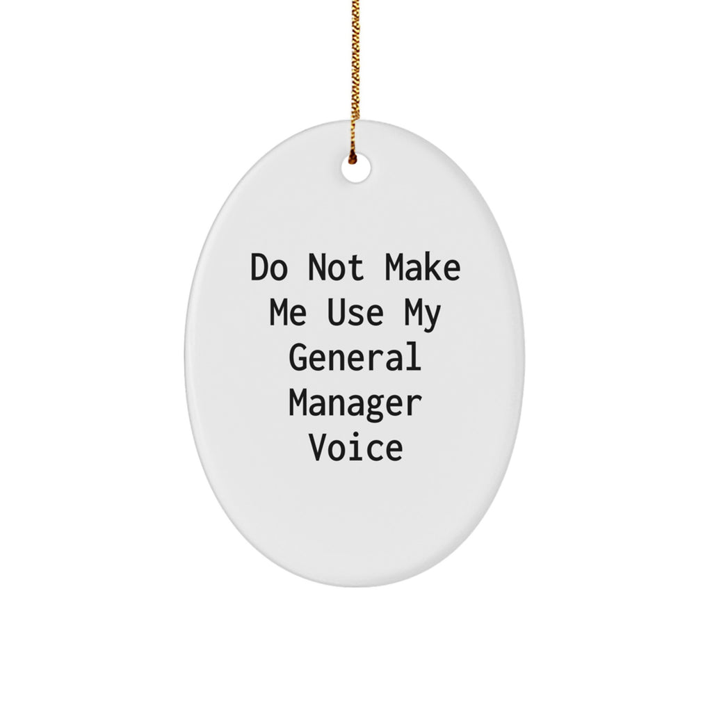 - Give the gift of laughter and joy to the General Manager in your life this Christmas. This Oval Ornament is a unique and thoughtful present that shows you care about their hard work and dedication.