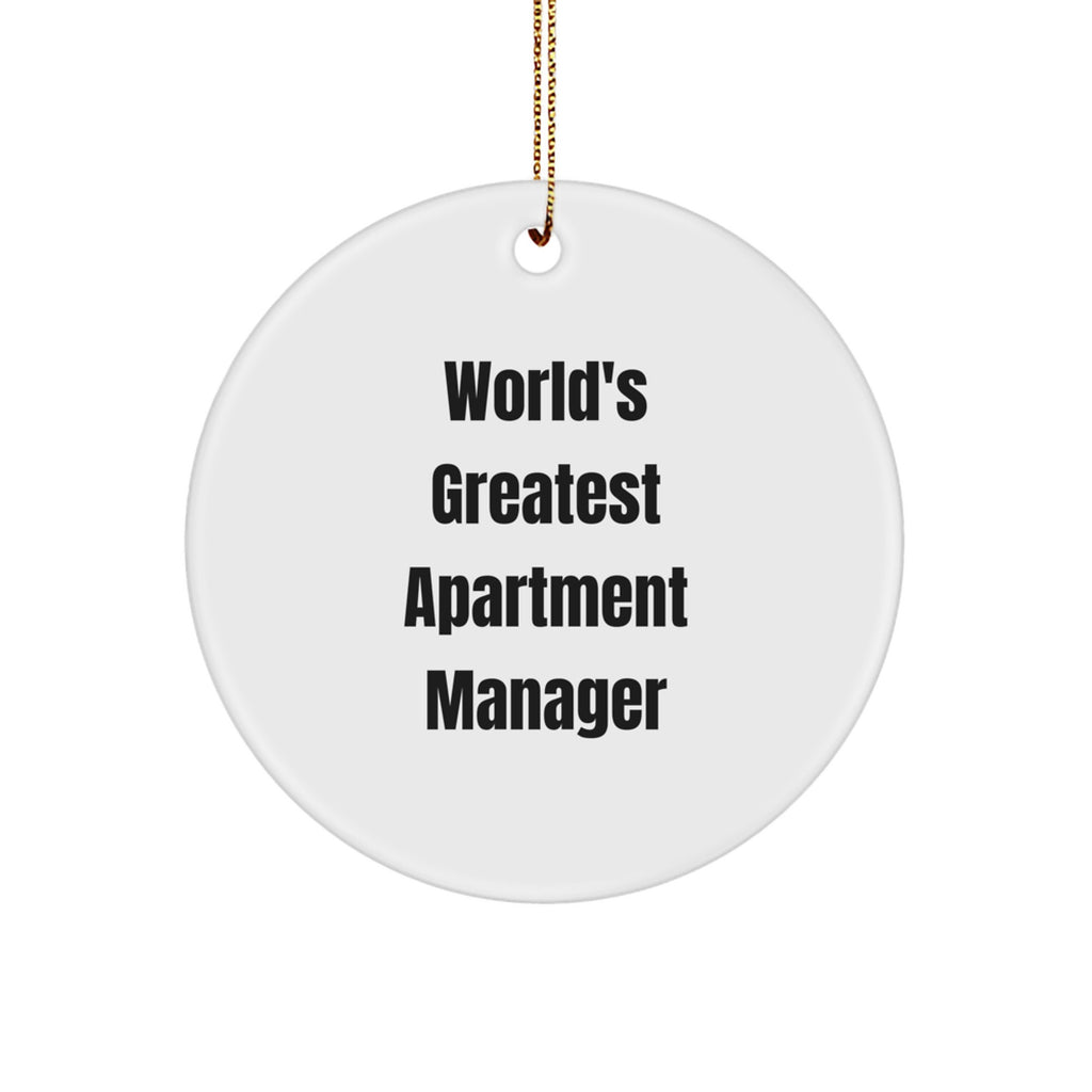 • Make a statement with this funny 'World's Greatest' Circle Ornament, perfect for any Apartment Manager who deserves recognition